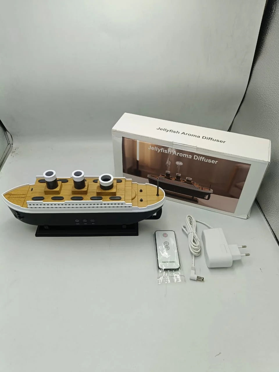The Jellyfish Aroma Diffuser is a stylish, ship-shaped humidifier and diffuser that combines functionality with unique home décor. Designed to resemble a classic cruise ship, it releases aromatic mist through its chimney outlets, creating a relaxing and visually pleasing atmosphere. Perfect for bedrooms, living rooms, or office spaces, it helps improve air quality while adding a decorative touch.